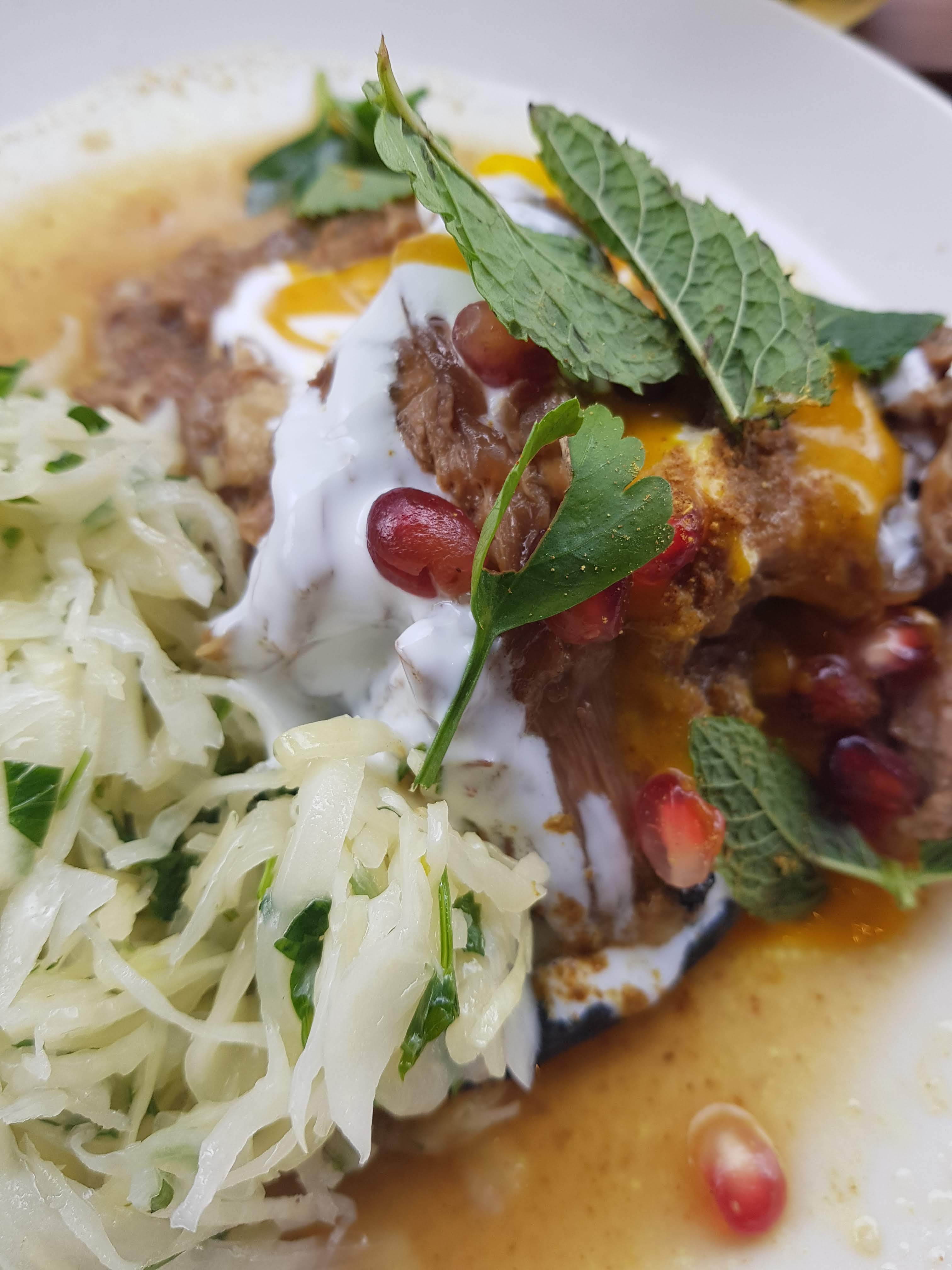I had booked a table (I recommend this as there were constantly people arriving and its pretty small). They sat me outside and I settled in on the quiet street. I am going to have to go back at some point as even on the small menu there were many things I wanted to order. I settled for the Lamb Sharwarma – slow cooked spiced lamb shoulder with burnt pita, pomegranate and amba and a Moshiko (a kind of middle-eastern mojito). Watching the world go by and reading my book (Let That Sh*t go by Nina Purewal & Kate Petriw which I am really enjoying) was just what I needed.